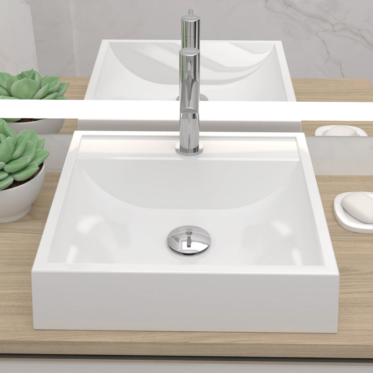 Tipo: De apoio Material: Mármore sintético Forma: Quadrada