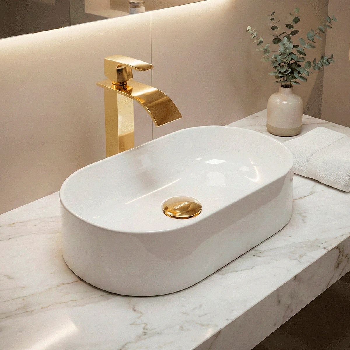 Tipo: De apoio Material: Mármore sintético Forma: Oval