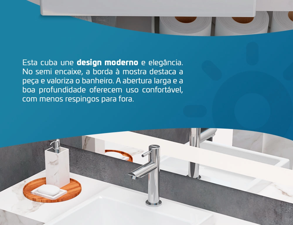 Descubra a Cuba BT-3103 da Beltempo, a escolha perfeita para quem busca transformar o banheiro com design moderno e um visual que valoriza o espaço. Fabricada em mármore sintético de alta durabilidade e com acabamento brilhante, esta cuba de semi encaixe não só encanta pela beleza, mas também garante funcionalidade e facilidade no dia a dia. Com excelente escoamento de água, seu formato é ideal para uma limpeza prática e uma instalação sem complicações. Adquira um produto de excelência da Beltempo, uma marca com 30 anos inovando com qualidade, que oferece garantia e suporte pós-venda dedicado para sua total tranquilidade.