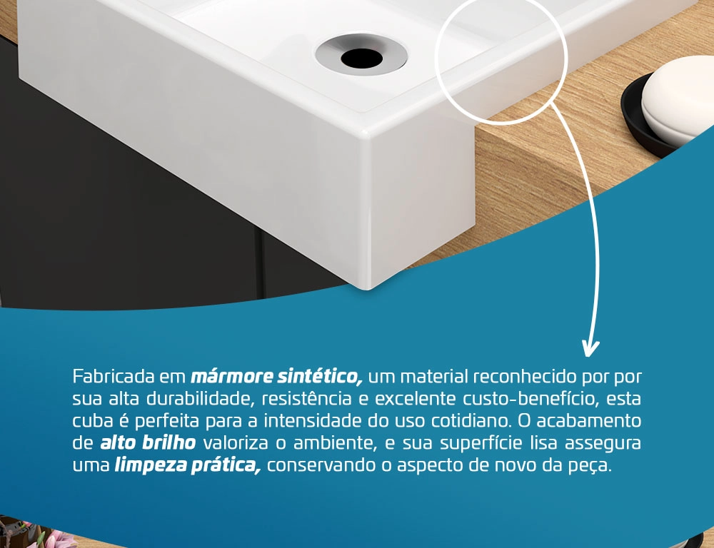 – Feito em mármore sintético
