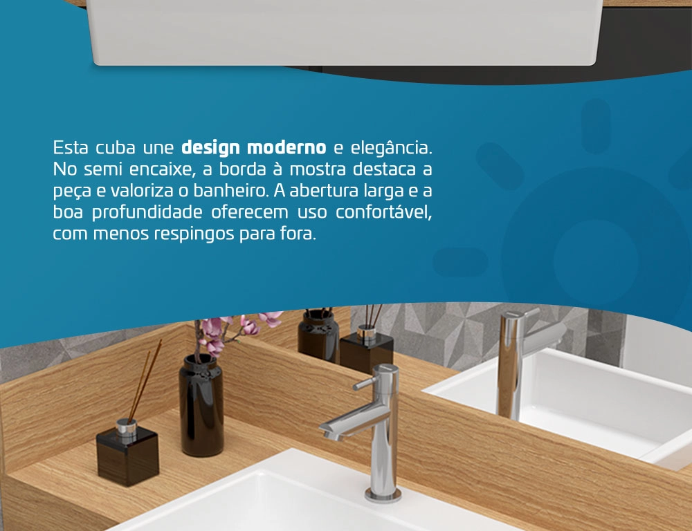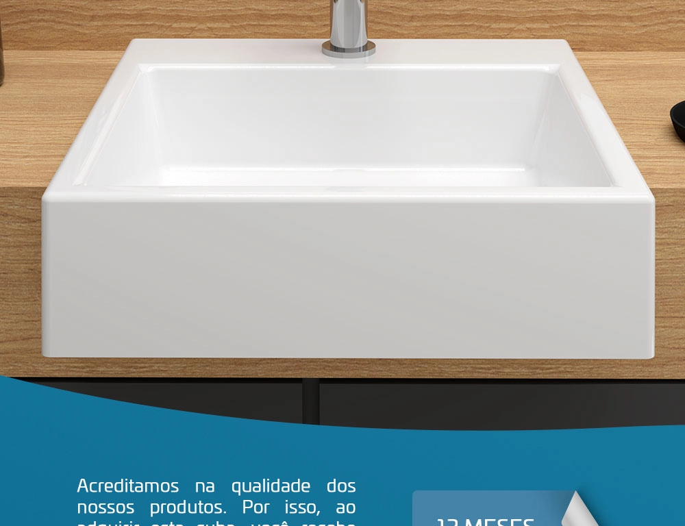 Cuba Pia de Semi Encaixe Quadrada 39×37 Branca Banheiro Lavabo Beltempo BT-3113