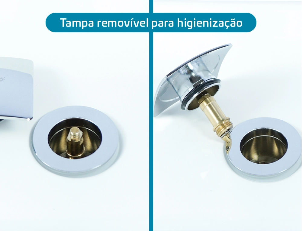 PRINCIPAIS CARACTERÍSTICAS: – Fabricada em aço inox latão resistente, garantindo maior durabilidade – Sistema de abertura e fechamento com um clique, proporcionando praticidade – A tampa click é removível, facilitando a higienização – Instalação simples e rápida – Design moderno com formato quadrado